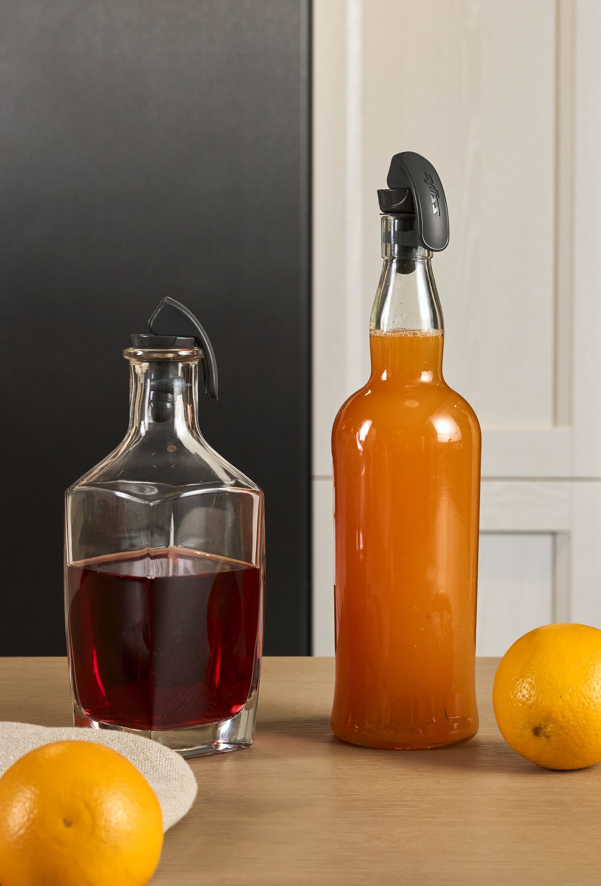 The Zyliss Bottle Stoppers 2-piece set keeps drinks fresh and bottles securely sealed. Featuring a durable, leak-proof rubber seal and a long, easy-grip handle, they make opening and closing bottles simple and mess-free. Designed to fit a wide range of bottle types, from sparkling water and soda to wine and juice. They provide a tight seal that helps preserve flavor and carbonation.