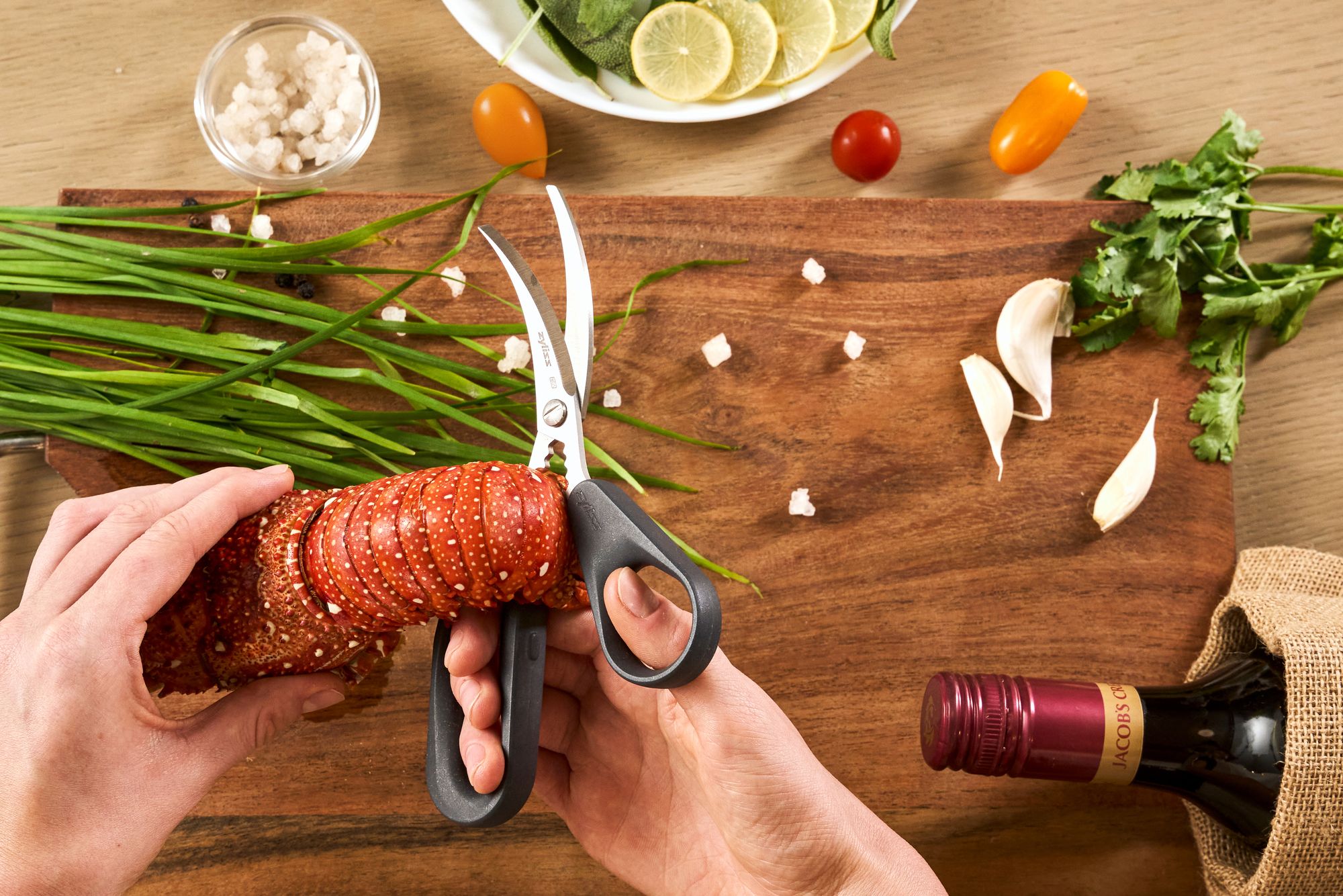 The Zyliss Seafood Scissors are a versatile 2-in-1 tool designed for effortless seafood preparation. The curved, micro-serrated stainless steel blades follow the natural shape of shellfish for clean, precise cuts and easy deveining. The handle includes an integrated shell cracker conveniently open lobster and crab claws without the mess. These Seafood Scissors offer comfort, control, and a lower environmental impact. Suitable for both left- and right-handed users, they’re compact, dishwasher safe, and built to last – a must-have tool for seafood lovers.